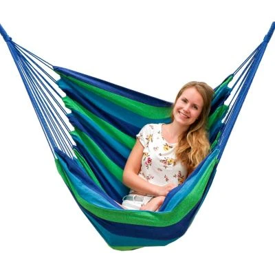 Die schöne Hängematte wirkt in jedem Ambiente modern! Die Hängeschaukel ist ein Naturprodukt – sie ist aus 100% hochwertiger Baumwolle hergestellt, hautfreundlich und bei 30°C in der Maschine waschbar.