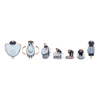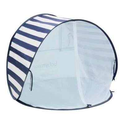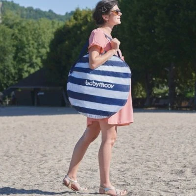 Mit der Strandmuschel Marinière von Babymoov ist der Nachwuchs in der Sonne gut geschützt. Das Pop-Up-Zelt bietet einen hohen UV-Schutz. Strandmuschel Marinière von Babymoov Pop-Up-Design inkl. Tragetasche und 4 Heringen UV-Schutz 50+ geeignet für 2 Kinder; 100(L) x 100(B) x 80(T) cm große Öffnung vorn mit Insektenschutz, 2 Fenster mit Vorhängen hinten wasserabweisender Stoff und Boden Die Strandmuschel von Babymoov begleitet Familien ans Meer oder in den Park. Das leichte und kompakt zusammenfaltbare Design kann in der praktischen Transporttasche unkompliziert überallhin mitgenommen werden. Der Aufbau gestaltet sich dank der Pup-Up-Funktion kinderleicht. Vier Heringe stehen zusätzlich zur Befestigung zur Verfügung. Die wasserabweisende und abwaschbare Stoffqualität der Strandmuschel bietet den Minis einen hohen Schutz vor UV-Strahlen. Zusätzlich hält das praktische Design auch Wind, Sand und sogar Insekten von den Kleinen fern. Das Moskitonetz an der Vorderseite kann komplett geschlossen werden. Die Luft zirkuliert dank des Netzgewebes und der zwei mit Vorhängen versehenen Fenster an der Rückseite weiterhin optimal.