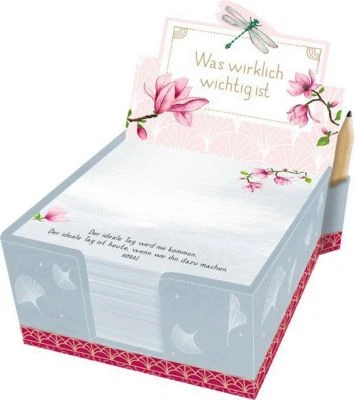 Praktisches und dekoratives Zettelkästchen mit 300 glücklich machenden Notizzetteln. Als besonderes Extra ist ein kleiner Bleistift zum Einstecken mit dabei.