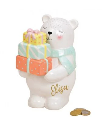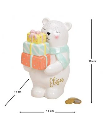 Und damit es keine Verwechslung gibt, kann die Spardose auch mit dem Namen des Kindes versehen werden.