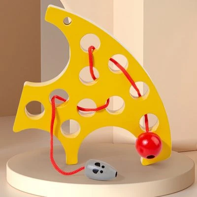 • Stecken Sie das Seil durch die Bausteine, Sie können die Hand-Auge-Koordination Ihres Babys trainieren