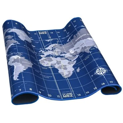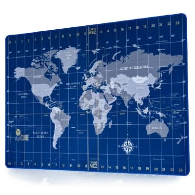 Mit dem Weltkarten Design geben Sie Ihrem Schreibtisch eine persönliche und nützliche Note. Neben dem optischen Highlight, welches Sie mit der Unterlage setzen, hat die Auflage auch praktische Vorzüge – lästige und hässliche Kratze in der Tischplatte adé und Sie kennen sich plötzlich aus auf der Welt und sehen die Zeitverschiebung zB für Amerika.