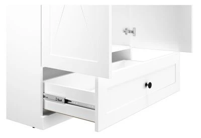 Kleiderschrank Lille Der moderne und geräumige Kleiderschrank in einer harmonischen Farbkombination bietet Ihnen viel Stauraum und lässt sich hervorragend kombinieren. Material: – Korpus: laminierte Faserplatte – Fronten: Mitteldichte Faserplatte (MDF) Farbe: – Korpus: weiß matt – Oberboden: eiche lefkas – Fronten: weiß matt Ausstattung / Abmessung (ca. Maße): – dekorative Fräsungen in den Fronten – 2 Türen, 1 Einlegeboden, 1 Schublade und 1 Kleiderstange – schwarze Knopfgriffe – Belastbarkeit des Einlegebodens: 10kg – Belastbarkeit der Schublade: 5kg – B/T/H: 92 cm / 54 cm / 200 cm