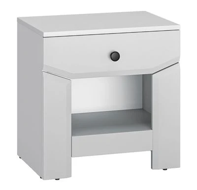 Nachtkonsole Terni Die moderne Nachtkonsole lässt sich hervorragend mit anderen Möbeln dieser Serie kombinieren. Material: – Korpus: laminierte Faserplatte – Front: Mitteldichte Faserplatte (MDF) Farbe: – Korpus: silbergrau – Front: silbergrau Ausstattung / Abmessung (ca. Maße): – 1 Schublade mit Vollauszug – 1 offenes Fach – schwarze Metallknopfgriffe – Belastbarkeit der Schublade: je 5 kg – B/T/H: 49 cm / 35 cm / 50 cm