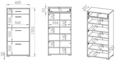 Schuhschrank Caro Der moderne und geräumige Schuhschrank bietet Ihnen viel Stauraum und lässt sich hervorragend mit anderen Möbeln dieser Serie kombinieren. Material: – laminierte Faserplatte Farbe: – Korpus/Front: sonoma Eiche hell Ausstattung / Abmessung (ca. Maße): – 3 Klapptüren, 3 Einlegeböden, 1 Schublade – schwarzer Kunststoffgriffe – Belastbarkeit der Einlegeböden: 10kg – Belastbarkeit der Schublade: 5kg – B/T/H: 60 cm / 34 cm / 126 cm