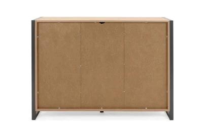 Mit ihren 3 Schubladen und den 4 großen Fächern (hinter der linken und hinter der rechten Tür) bietet Kommode „Farina“ eine Menge Stauraum. Farinas rustikales Erscheinungsbild, in Artisan Oak (Handwerker-Eiche) und Anthrazit, mit reduzierter Griffleiste mit Schrägkanten, lässt sich prima mit verschiedenen Wohnstilen geschmackvoll kombinieren.