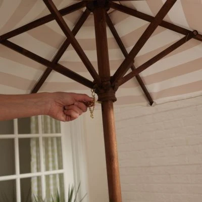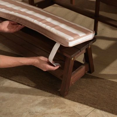 Die schönen und freundlichen Farben der Sitzkissen und des Sonnenschirmes passen sich perfekt dem dunklen Massivholz an und ergeben ein tolles Bild im Garten, auf der Terrasse oder dem Balkon.