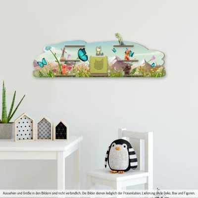 Unsere bezaubernden Musikbox-Regale mit wunderschönen Motiven sind das absolute Highlight in jedem Kinderzimmer. Sie überzeugen durch einmaliges Design und originelle Form. Die mitgelieferten, selbstklebenden Metallplättchen können an beliebigen Stellen positioniert werden und sorgen für eine ideale magnetische Haftung der Figuren am Regal.