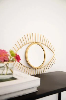 Bakis ist nicht nur funktional, sondern auch selbst ein absoluter Blickfang! Der Spiegel in Augenform eignet sich sowohl um sich selbst betrachten zu können, erweitert zudem aber auch optisch den Raum und dient ideal als Wanddekoration. Die Form gibt Bakis seinen besonderen Twist und macht den ovalen Spiegel in Gold zu einem echten Must-Have!