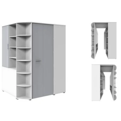 begehbarer Eckkleiderschrank mit Falttür JOHANNESBURG-43 in weiß mit light grey