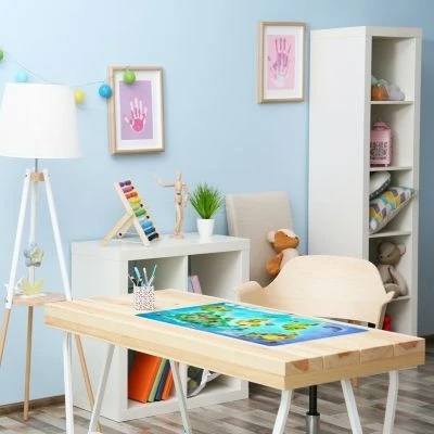Reißfestes stabile Schreibtischunterlage aus bedrucktem 2,2 mm starkem Vinyl, mit tollen Design für Kinder.