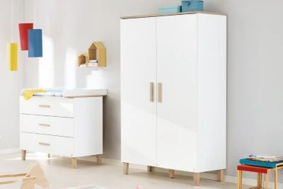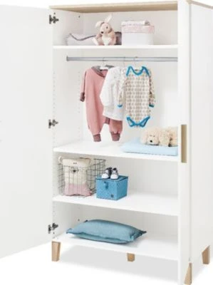 Der Kleiderschrank „Lumi“ von Pinolino bietet jede Menge Platz für Kleidung, Spielzeug und mehr. Dank des Soft-Close-Systems lassen sich die Türen sanft und leise schließen, ohne dass das Kind Gefahr läuft, sich die Finger einzuklemmen. Die Füße aus massivem Eichenholz sorgen für bestmögliche Stabilität.