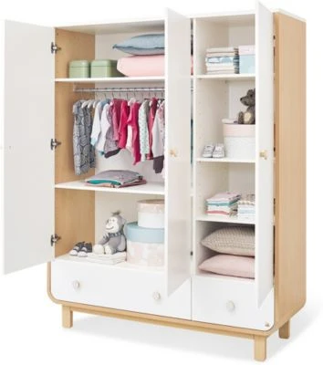 Der PINOLINO Kleiderschrank „Round“ bietet umfangreichen Stauraum. Hier kann die Garderobe Ihres Kindes bestens untergebracht werden. Vielleicht bleibt sogar noch Platz für Spielzeug? Das zeitlose Design sorgt dafür, dass Ihr Kind lange Freude an diesem hübschen Möbelstück hat. Die unteren Ecken sind abgerundet und beugen so Verletzungen während der Krabbelzeit vor.