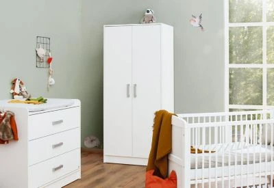 Das Kinderzimmer-Programm Viktoria von Pinolino ist durch seine klaren Linienführung und dem strahlenden weiß zeitlos und lässt sich wunderbar kombinieren. Die silberfarbenen Griffe bilden einen schönen Kontrast.