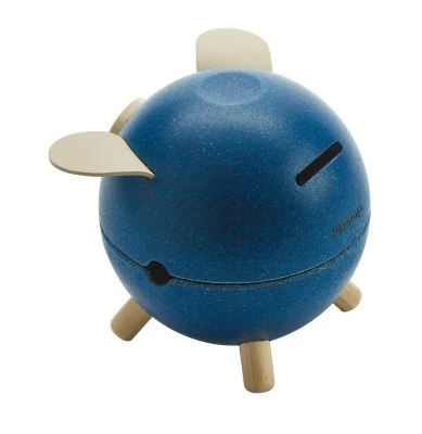 Dieses schönen Sparschweine in blau hilft Ihrem Kind bei der finanziellen Disziplin und fördern mathematische, feinmotorische und soziale Fähigkeiten.