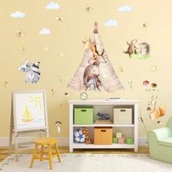 Nikima Wandtattoo 121 Wandtattoo Freunde Im Tipi Zelt Bär Giraffe Igel Aquarell Wandtattoos