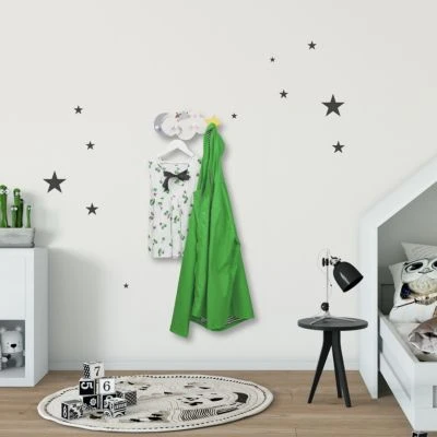Zu viele Jacken und zu wenig Platz? Dabei hilft die Kindergarderobe. Die Hakenleiste schafft genug Stauraum für die Kleidung Deines Kindes und setzt gleichzeitig dekorative Akzente. Das niedliche Design der Kleiderhaken aus Wolke, Mond und Sternen erinnert an den Nachthimmel und lässt Kinderherzen höherschlagen. Ob im Kinderzimmer oder im Flur, die schmale Garderobenleiste mit vier Haken fügt sich auch in kleine Räume optimal ein. So bringt die Wandgarderobe in kürzester Zeit Ordnung ins Chaos.