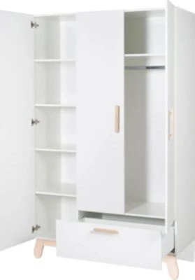 Schnörkellos und mit schlichter Eleganz besticht der Kleiderschrank „Clara“ der Marke roba. Die Kleiderstange, die Schublade und die vielen Fächer ermöglichen eine sehr übersichtliche Aufteilung. So können Kleidung und alles weitere ordentlich einsortiert und stets schnell gefunden werden. Dank des Soft-Close-Systems lassen sich alle Türen und Fächer sanft und leise schließen.