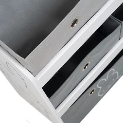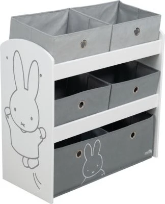 Dieses tolle Spielregal ‚MIFFY‘ von Roba ist einfach das perfekte Möbelstück für das Kinderzimmer Ihres kleinen Lieblings! Dank des niedlichen Häschen-Designs ist es ein richtiger Hingucker und die praktische Größe sorgt dafür, dass Sie einfach einen Platz dafür finden. In den fünf Stoffboxen wird viel Stauraum geboten – egal ob für Spielsachen, Kuscheltiere oder andere Schätze.