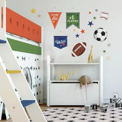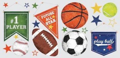 Die Wandsticker Sports Balls aus dem Hause ROOMMATES sind genau das richtige für eifrige kleine Sportler. Bei Bedarf lassen sie sich rückstandslos von der Wand entfernen und wiederverwenden.