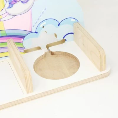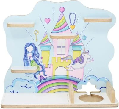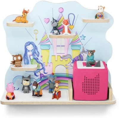 Für alle Fans der beliebten Hörspielbox kommt hier das passende Regal zum Aufstellen! Mit dem Regal „Traumland“ von stadtecken ist die Musikbox gut aufgeräumt und die passenden Figuren können übersichtlich aufgestellt werden. Was hören wir denn heute? Der Abstellplatz für die Musikbox ist mit einer Vertiefung für die Ladestation versehen und auf den freien Flächen finden viele der fröhlichen Hörfiguren Platz. Dank der eingebauten Metallbleche bleiben die magnetischen Figuren an ihrem Platz.