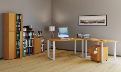 Passend zum Schreibtisch sind weitere Büroschränke und Rollcontainer der Serie „VCM Lona“ erhältlich.