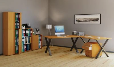 Passend zum Schreibtisch sind weitere Büroschränke und Rollcontainer der Serie „VCM Lona“ erhältlich.