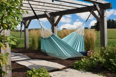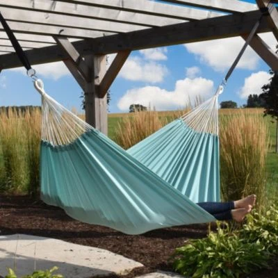 Mit dieser Doppel-Hängematte können bis zu zwei Personen gleichzeitig eine entspannte Zeit haben und die Seele baumeln lassen. Die Hängematte besteht aus engmaschigem und langlebigem Baumwollgewebe, das noch dazu angenehm hautfreundlich ist. Die Hängematte kann unkompliziert aufgehängt werden und begeistert mit einer Tragetasche zum Mitnehmen.