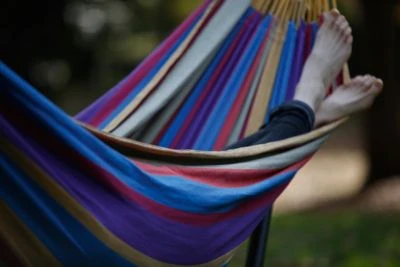 Die Vivere Hängematte zeigt sich im zeitlosen Streifenlook und bietet genug Platz für zwei Personen. Das Modell besteht aus einem engmaschigen, qualitativ hochwertigen Baumwollgewebe und ist somit nicht nur robust und widerstandsfähig, sondern auch besonders hautfreundlich. Die Doppelhängematte kommt praktischerweise gleich mit einem Hängemattengestell, das aus robustem Stahl gefertigt ist und sich in wenigen Minuten aufbauen lässt – und das ganze ohne Werkzeug! Und damit auch das Transportieren ganz einfach geht, ist eine Tragetasche mit im Lieferumfang enthalten.