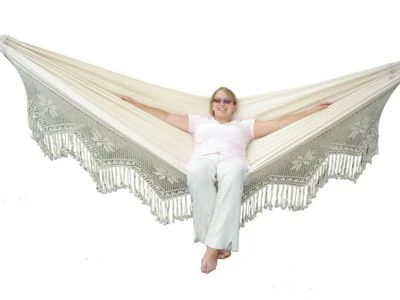 Vivere Doppel Deluxe Cotton Hängematte für 2 Personen Typ Brasilien mit Haltegurten natur