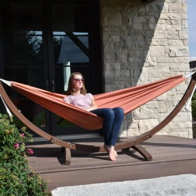 – DOUBLE SUNBRELLA Hängematte mit festem Kieferständer – CORAL