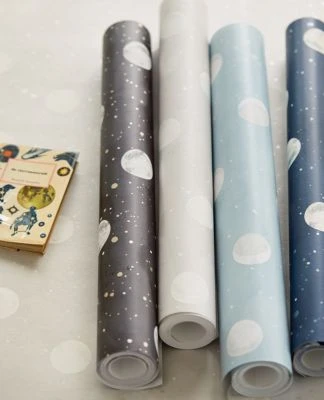 Die Vliestapete Eijffinger MINI ME sorgt nach Einbruch der Dunkelheit für einen tollen Leuchteffekt, der kleinen Astronomen viel Raum zum Entdecken gibt. So lassen sich am Abend die aufscheinenden Mondphasen erkunden. Zur Anbringung wird der Kleister einfach direkt auf die Wand gegeben und die Tapete Bahn für Bahn angeklebt. Bei Bedarf lässt sie sich restlos und trocken einfach wieder abziehen.