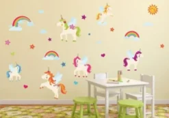 Nikima Wandtattoo 018 Wandtattoo Einhörner Regenbogen Unicorn Bunt Wolken Sonne Sterne Wandtattoos
