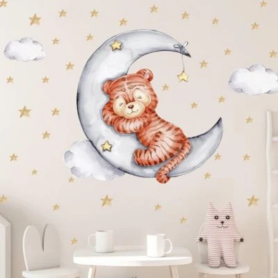 • LIEFERUMFANG: Ein Wandtattoo mit dem Tiger und den Mond, in der Wunschgröße (Breite x Höhe) inkl. Anleitung zur kinderleichten Anbringung.