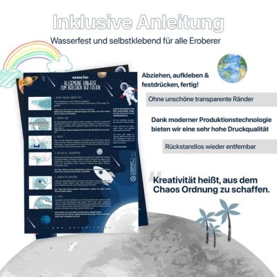 • ABZIEHEN & AUFKLEBEN: Die Wandtattoos lassen sich extrem leicht vom Träger entfernen und auf einem sauberen und glatten Untergrund aufbringen.
